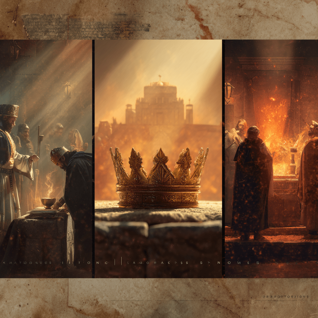 ―神殿建設が「霊的理想」から「外交・契約・物流・労務」へ降りてくる章です。祈りで与えられた知恵は、ここで“木材と石と人員”を動かします。同時に、祝福の光の中に、労役という影が濃くなり始めます。
