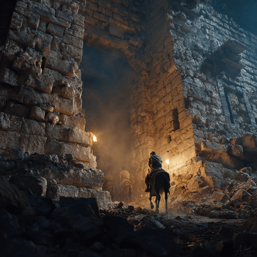 もう一組の合唱隊は反対方向へ進み、ネヘミヤは民の半分と共にその後ろに続きます。二方向から都を囲む賛美は、霊的にも象徴的にも“包囲”です。今度包囲するのは敵ではなく、賛美です。