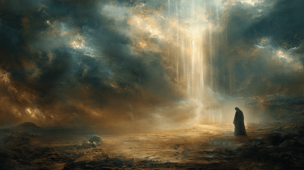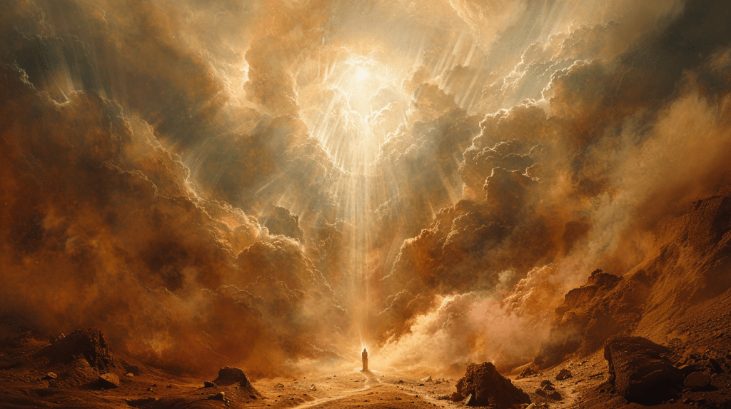「主の声は雷鳴ではなく、裁きの確信として響いた。」
